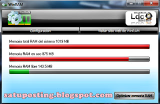 WinRam adalah alat yang memungkinkan untuk mengoptimalkan memori RAM (Random Access Memory) komputer Anda.Saat ini WINRAM telah dikembangkan, sebuah aplikasi yang didedikasikan untuk optimasi memori pada saat-saat tertentu.
